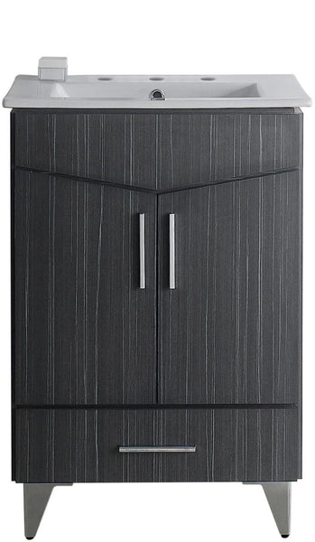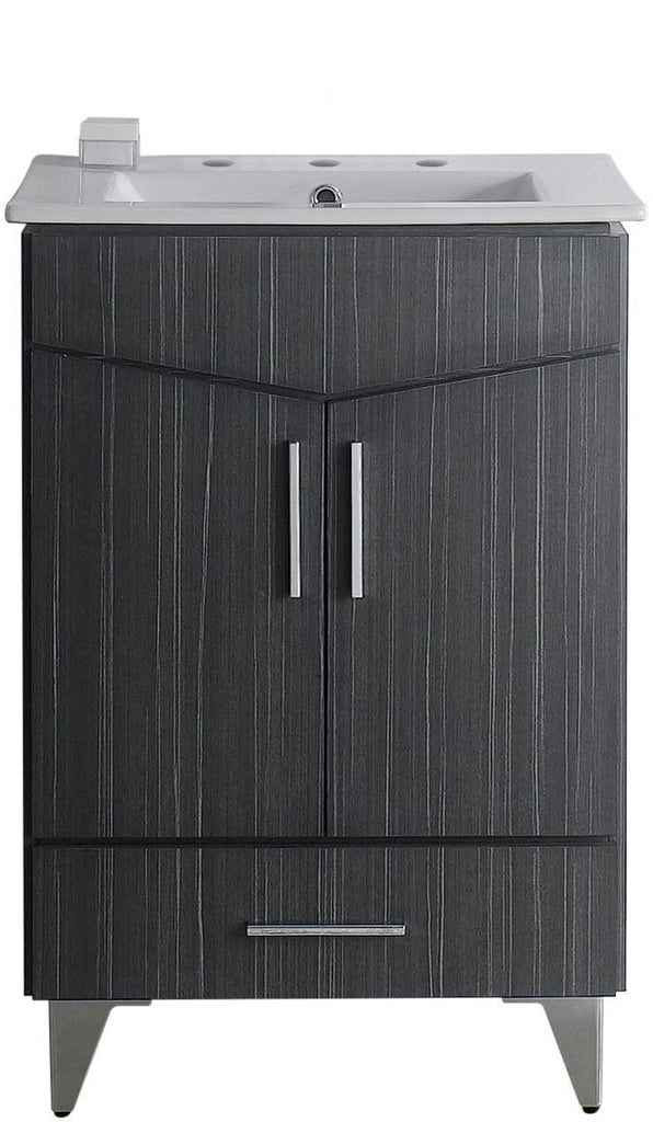 This modern vanity set belongs to the exquisite Zen design series. It features a rectangle shape. This vanity set is designed to be installed as a floor mount vanity set. It is constructed with plywood-melamine. This vanity set comes with a melamine finish in Dawn Grey color. It is designed for a 3h8-in. faucet.