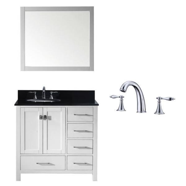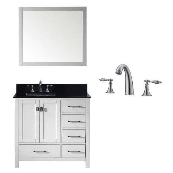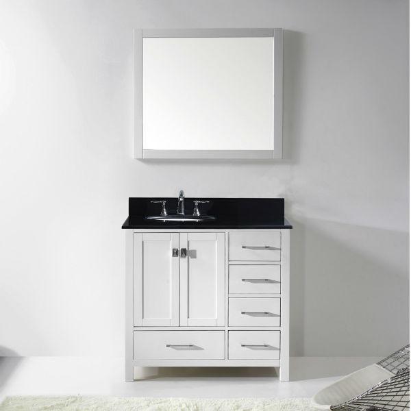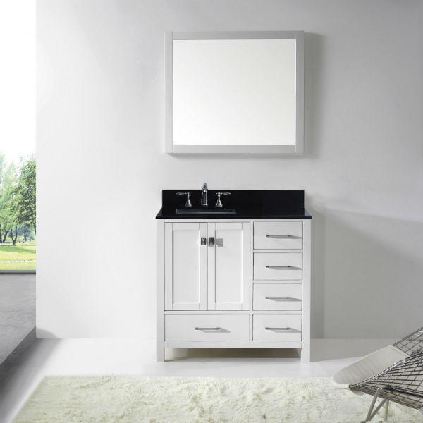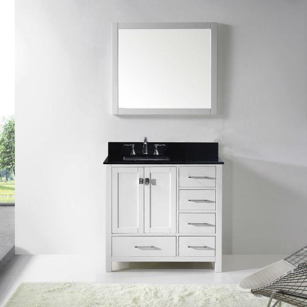 Caroline Avenue 36″ White Freestanding Bathroom Single Vanity with Black Galaxy Granite Vanity Top GS-50036 by Virtu USA