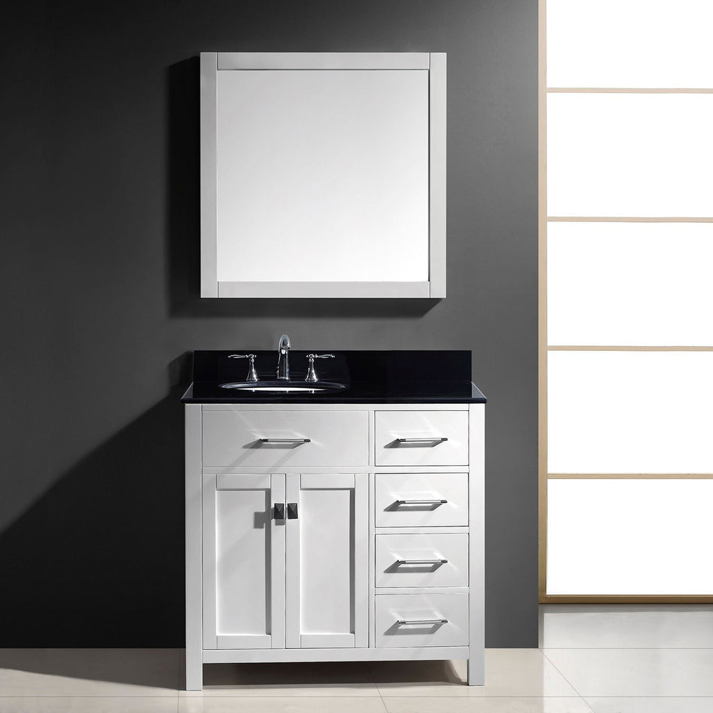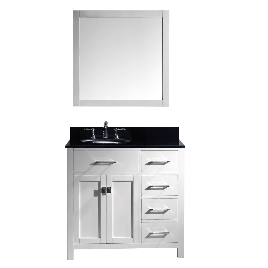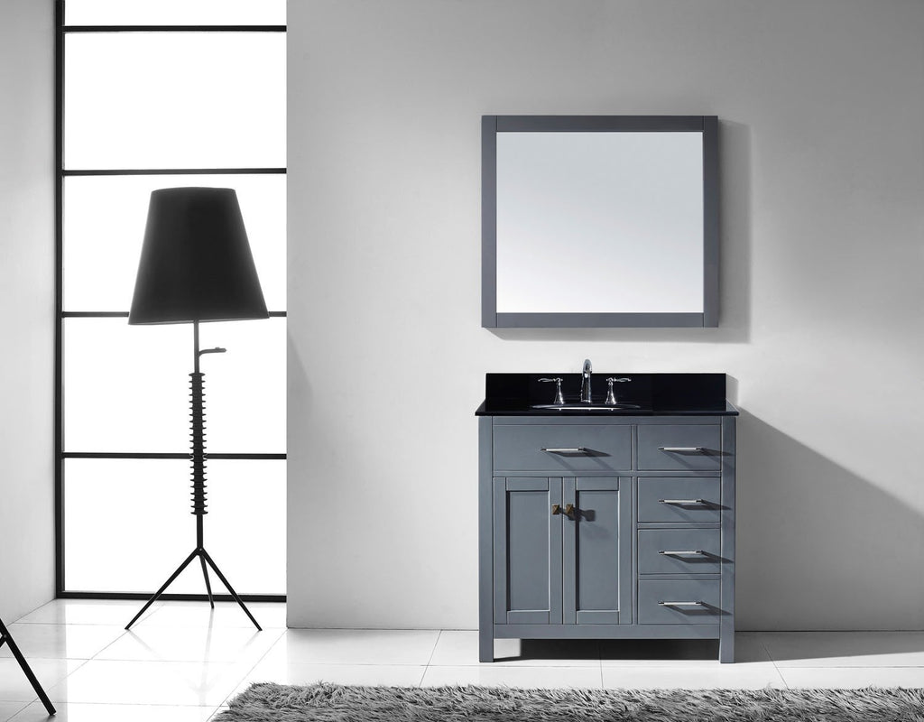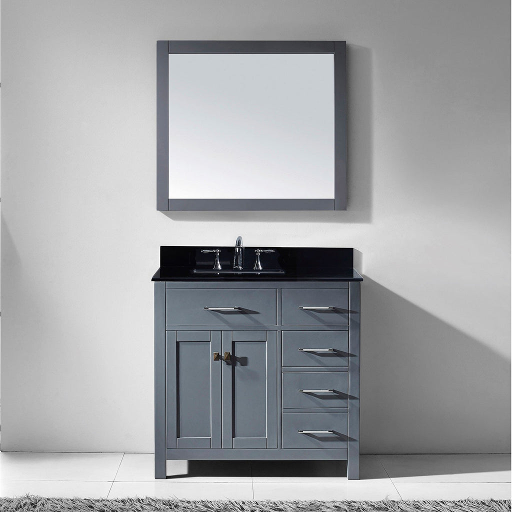 Details of the Caroline Parkway 36" Single Bathroom Vanity in Espresso with Black Galaxy Granite Top and Round Sink with Mirror