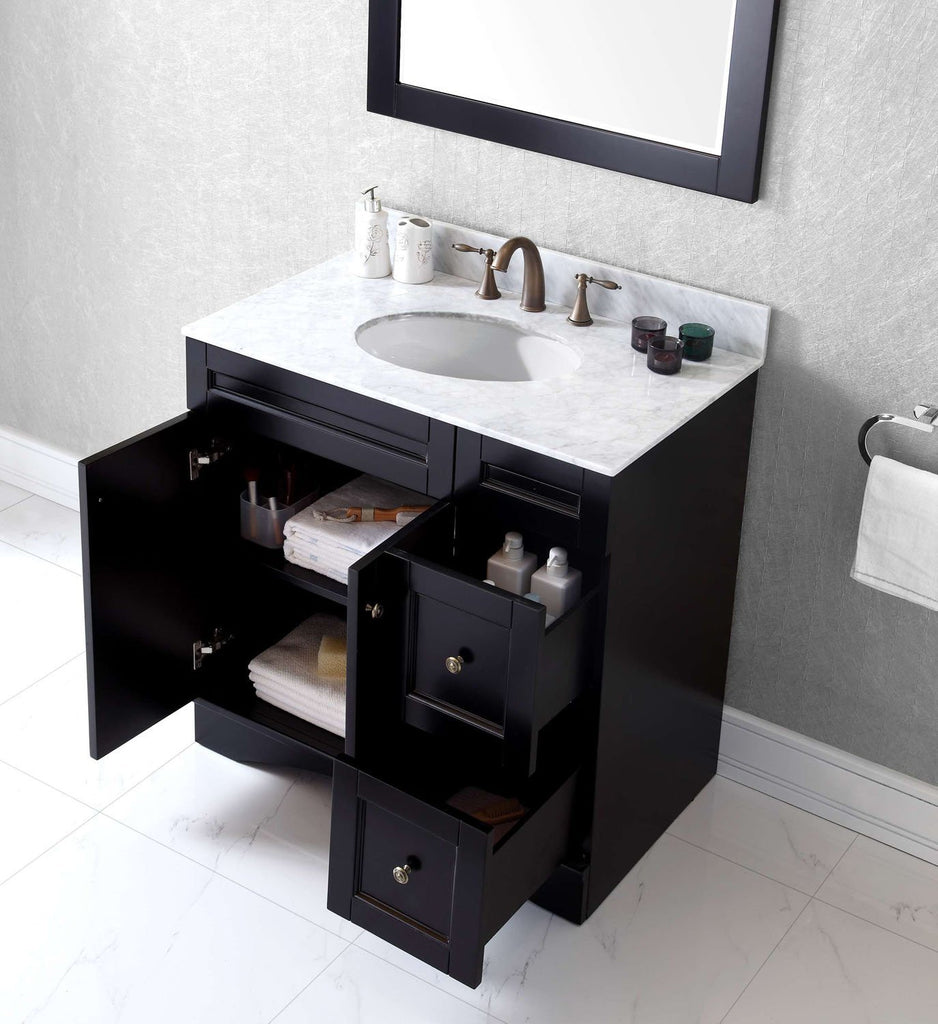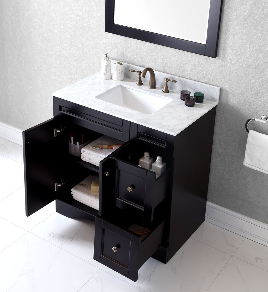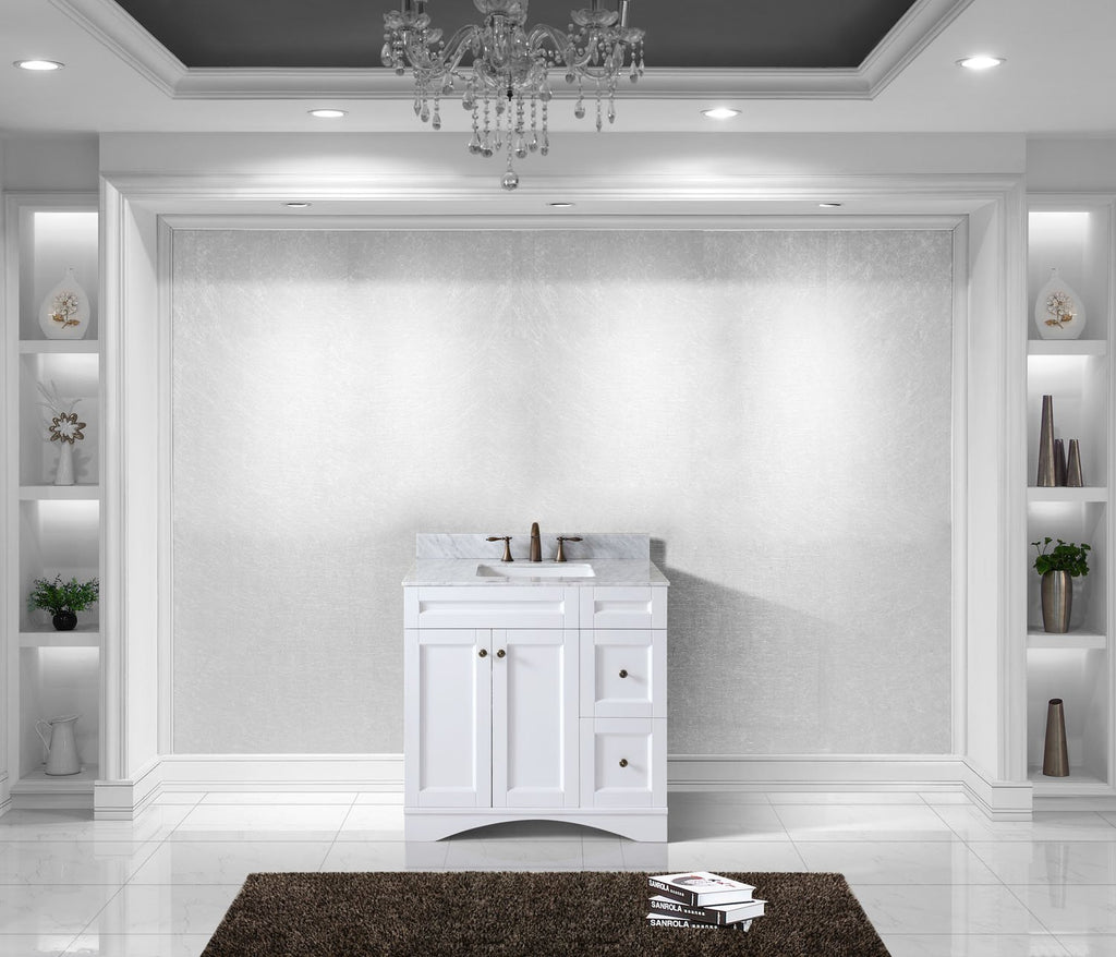 Details of the Virtu USA Elise 36" Single Bathroom Vanity w/ Marble Top