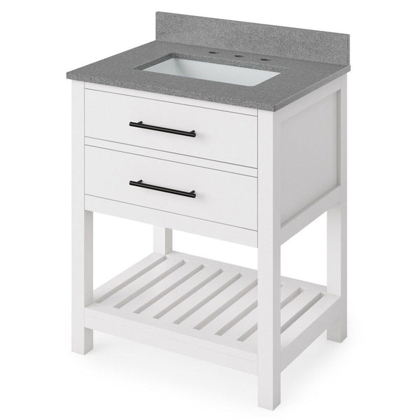 Wavecrest Contemporary White 30" Rectangle Sink Vanity with Steel Grey Cultured Marble Top | VKITWAV30WHSGR