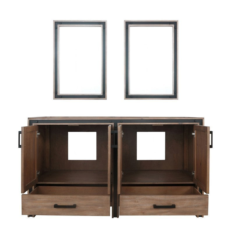 Lexora Ziva 60 Inch Rustic Barnwood Double Vanity, no Top and 22 Inch Mirrors | LZV352260SN00M22