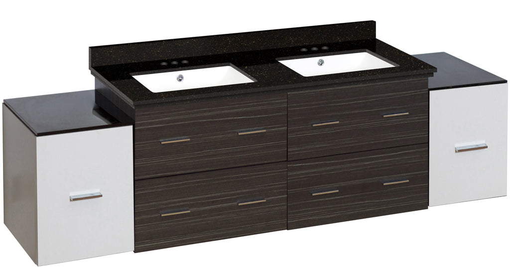American Imaginations Xena 76-in. W Wall Mount White-Dawn Grey Vanity Set For 3H4-in. Drilling Black Galaxy Top White UM Sink