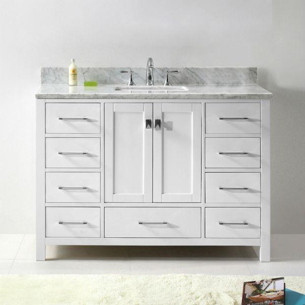 Caroline Ave 48" White Freestanding Single Bathroom Vanity w/ Italian Carrara White Marble Top GS-50048 by Virtu USA