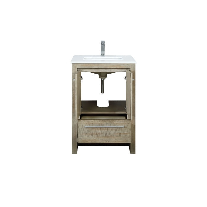 Details of the Lafarre 24 Inch Rustic Acacia Bathroom Vanity, White Quartz Top, White Square Sink, and Labaro Rose Gold Faucet Set by Lexora | LLF24SKSOS000FRG
