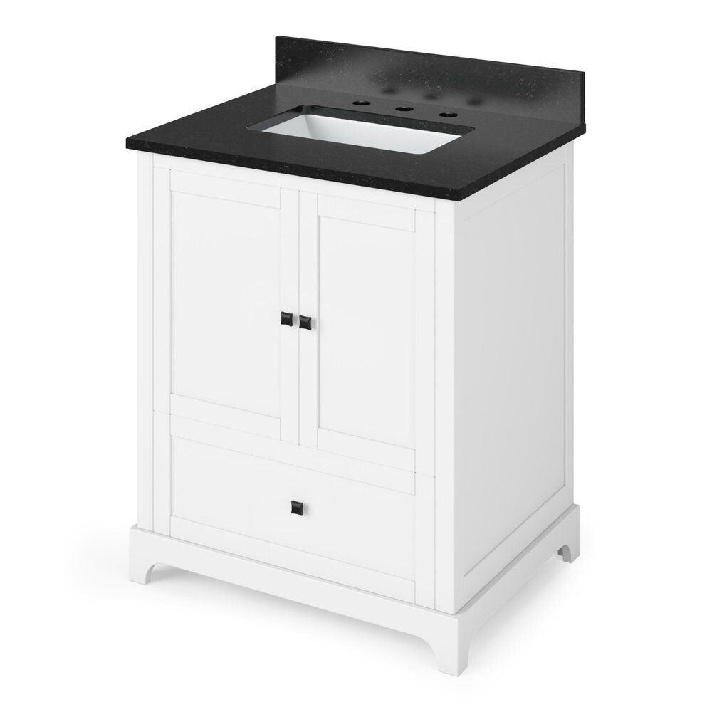Details of the 30" White Addington Vanity, Black Granite Vanity Top, undermount rectangle bowl by Jeffrey Alexander | VKITADD30WHBGR