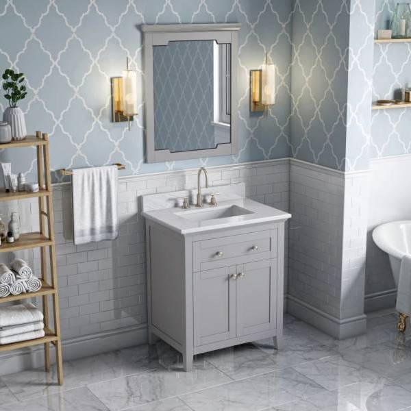 Jeffrey Alexander Chatham Traditional 30" Grey Single Undermount Sink Vanity With Marble Top | VKITCHA30GRWCR