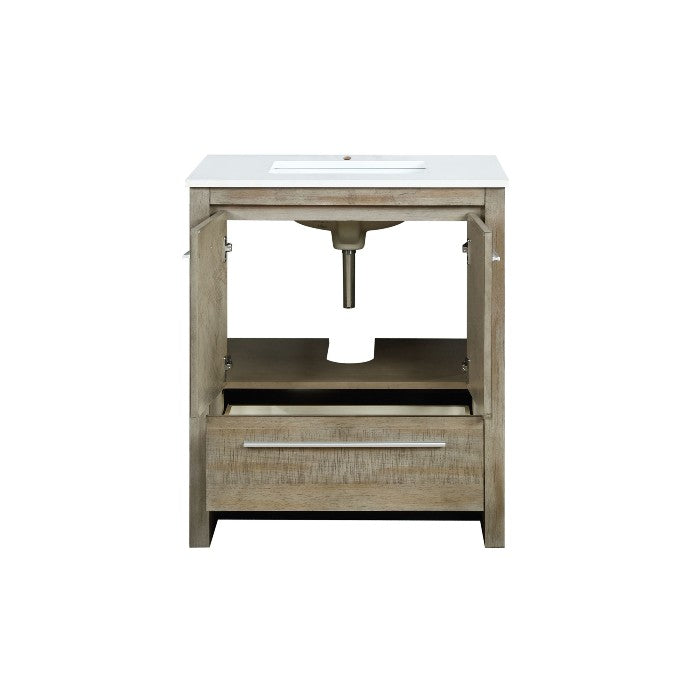 Lexora Lafarre Contemporary 30" Rustic Acacia Single Sink Bathroom Vanity with White Quartz Top | LLF30SKSOS000