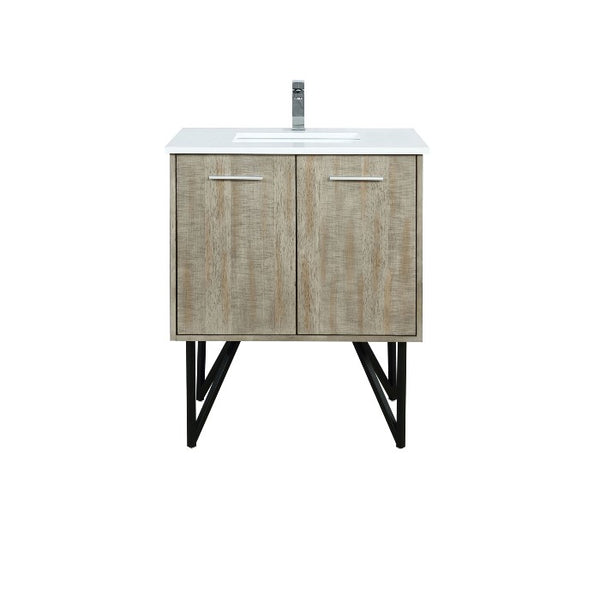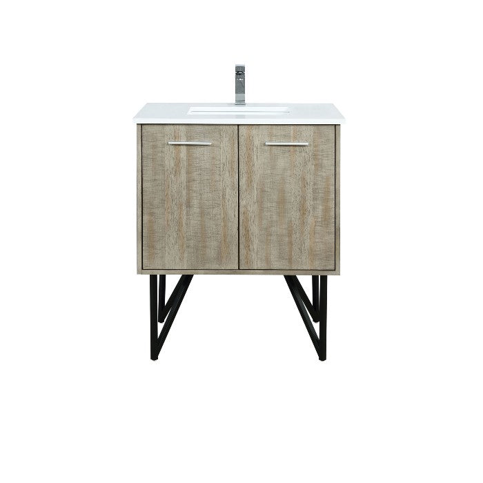 Lexora Lancy Modern Rustic Acacia 30" Square Sink Bathroom Vanity w/ White Quartz Top and Labaro Brushed Nickel Faucet | LLC30SKSOS000FBN