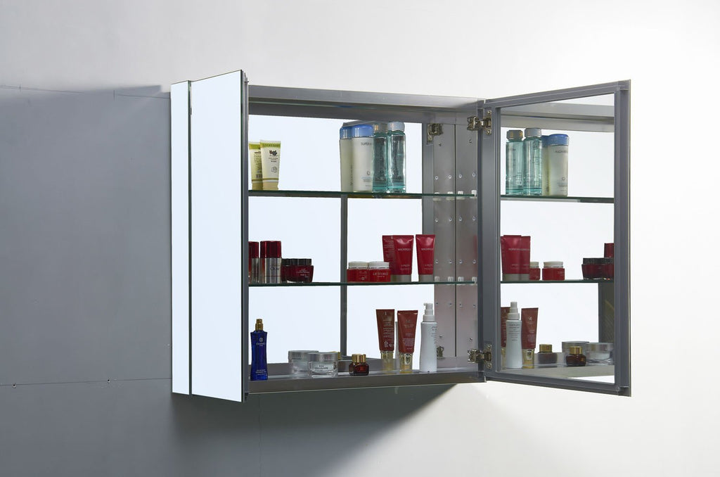 Virtu USA leads the bathroom vanity Industry and with our in house technology already in place we are now introducing a very sophisticated mirror cabinet with clean lines. With all the experience in the bathroom industry it was quite easy for Virtu to design and create what we consider simple Classy , with mirrored surfaces inside and outside, this 20 in. frameless medicine cabinet helps you put your best face forward. The mirror on the front door features sophisticated clean lines. Inside it is equipped with adjustable glass shelves and another wonderful option and what Virtu is very famous for doing which is adding soft closing doors to what is already a wonderful piece