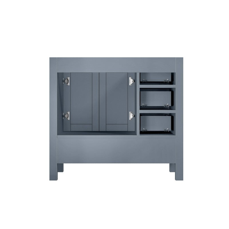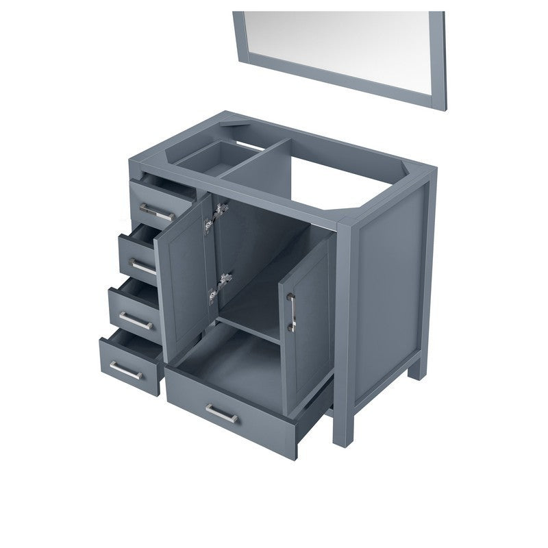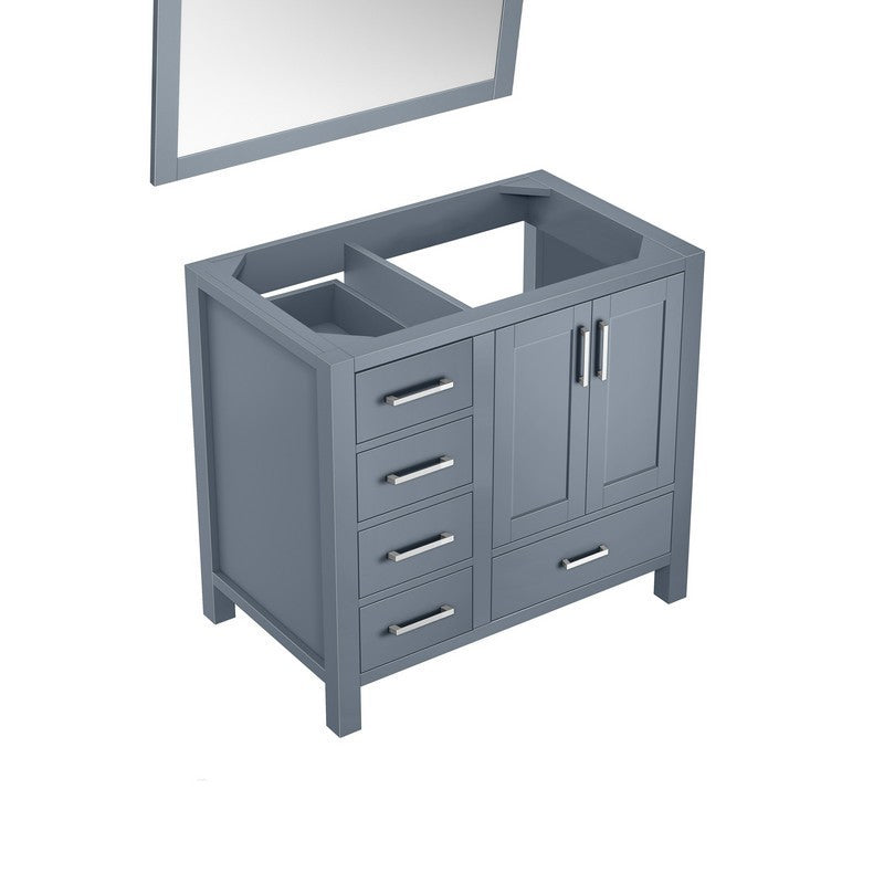 Lexora Jacques 36 Inch Dark Grey Single Vanity, no Top and 34 Inch Mirror - Right Version | LJ342236SB00M34R
