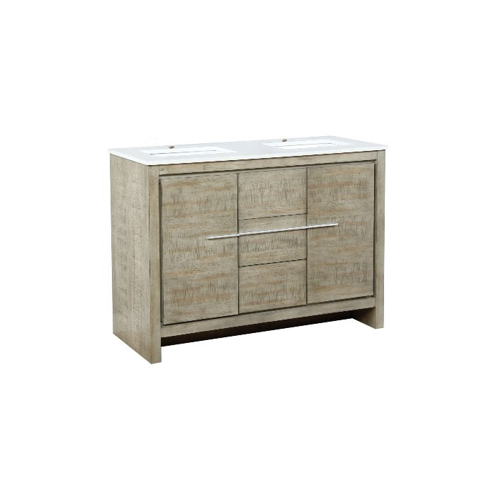 Lexora Lafarre Contemporary 48" Rustic Acacia Double Sink Bathroom Vanity with White Quartz Top | LLF36SKSOS000
