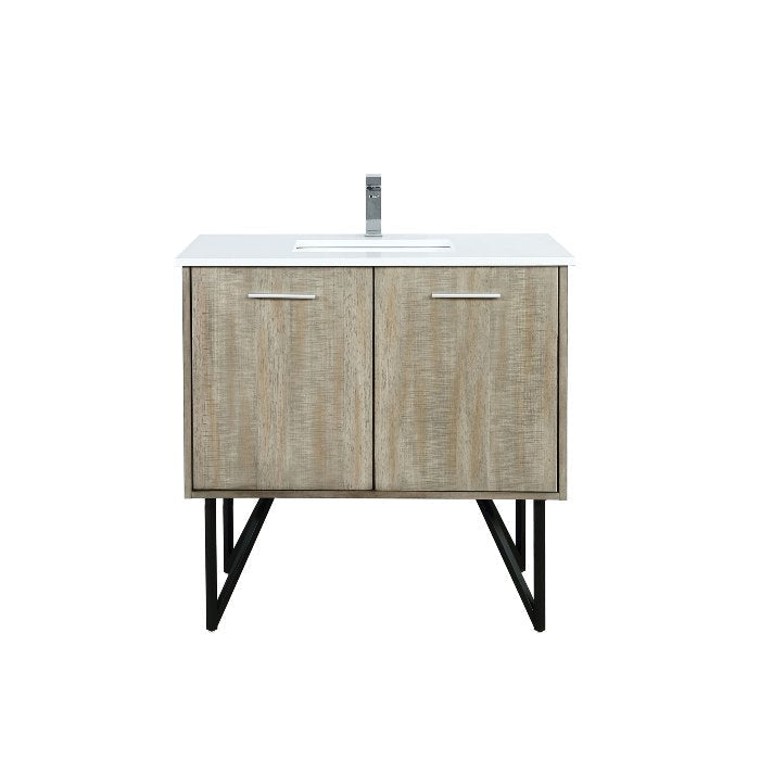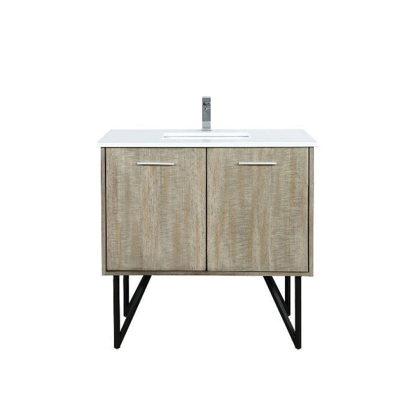 Details of the Lancy Modern 36 Inch Rustic Acacia Bathroom Vanity, White Quartz Top, White Square Sink, and Labaro Rose Gold Faucet Set by Lexora | LLC36SKSOS000FRG