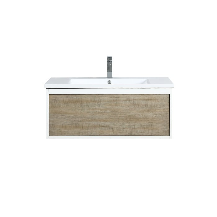 Lexora Scopi Modern 36" Rustic Acacia Bathroom Vanity w/ Acrylic Composite Top, and Labaro Brushed Nickel Faucet | LSC36SRAOS000FBN