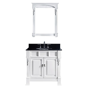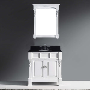 Want to go classic? Think about a 36-inch white bathroom vanity, many of which come in a traditional design with a toe kick or arched cabinets. You can also find more modern interpretations with high gloss finishes, polished hardware, or flat front doors.