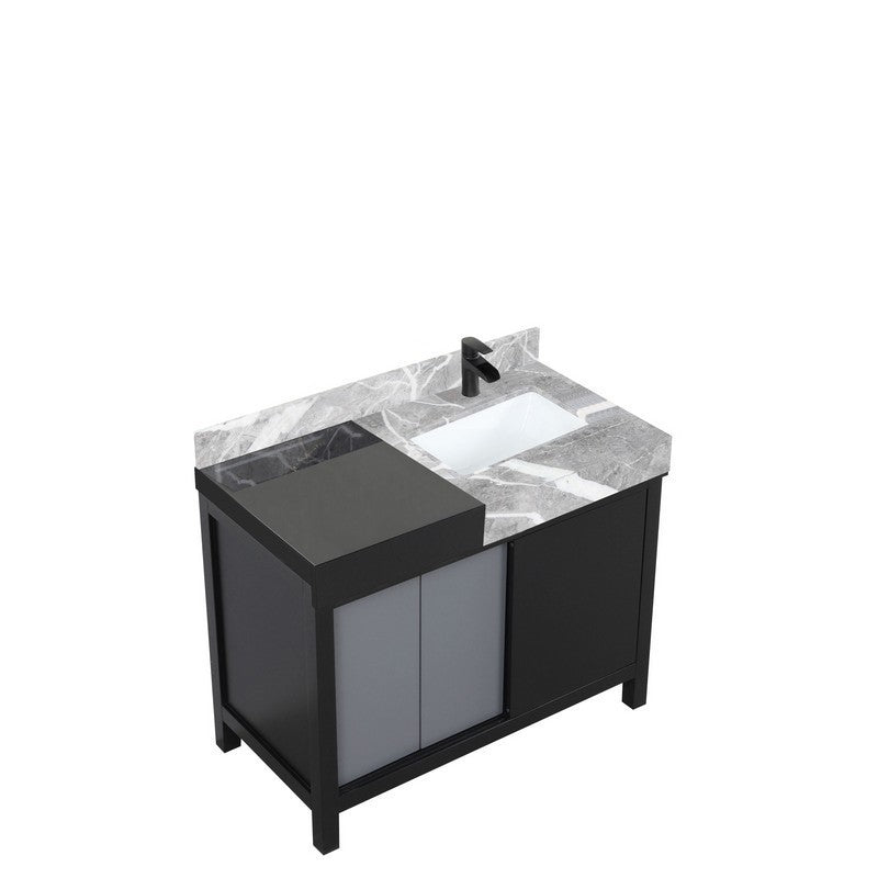 Zilara 42" Black and Grey Vanity, Castle Grey Marble Top, and Cascata Nera Matte Black Faucet Set | LZ342242SLISFCM