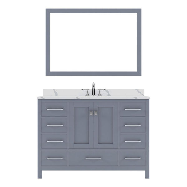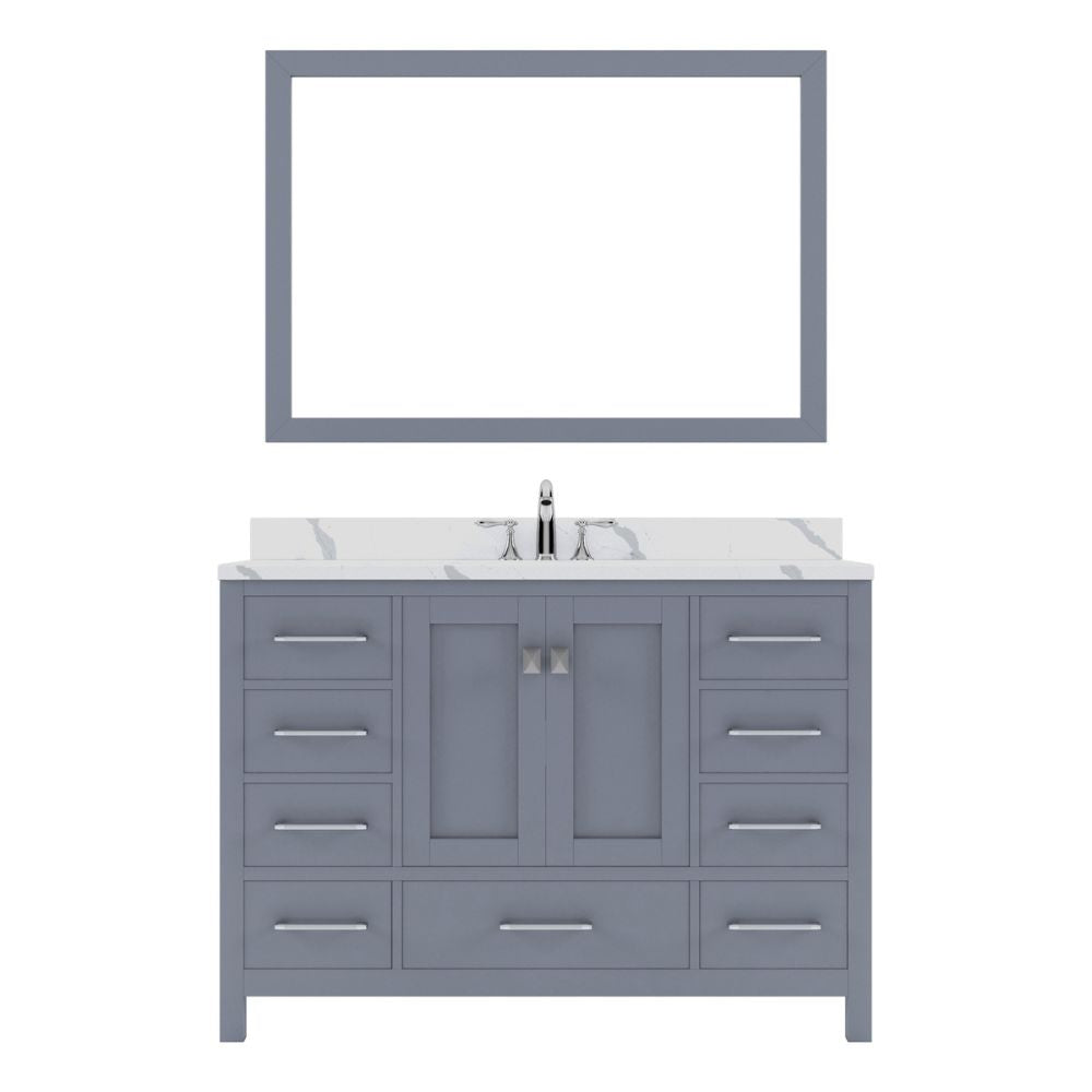 Details of the Virtu USA Caroline Avenue 48" Single Bath Vanity in Gray with Calacatta Quartz Top and Round Sink with Polished Chrome Faucet with Matching Mirror | GS-50048-CCRO-GR-002