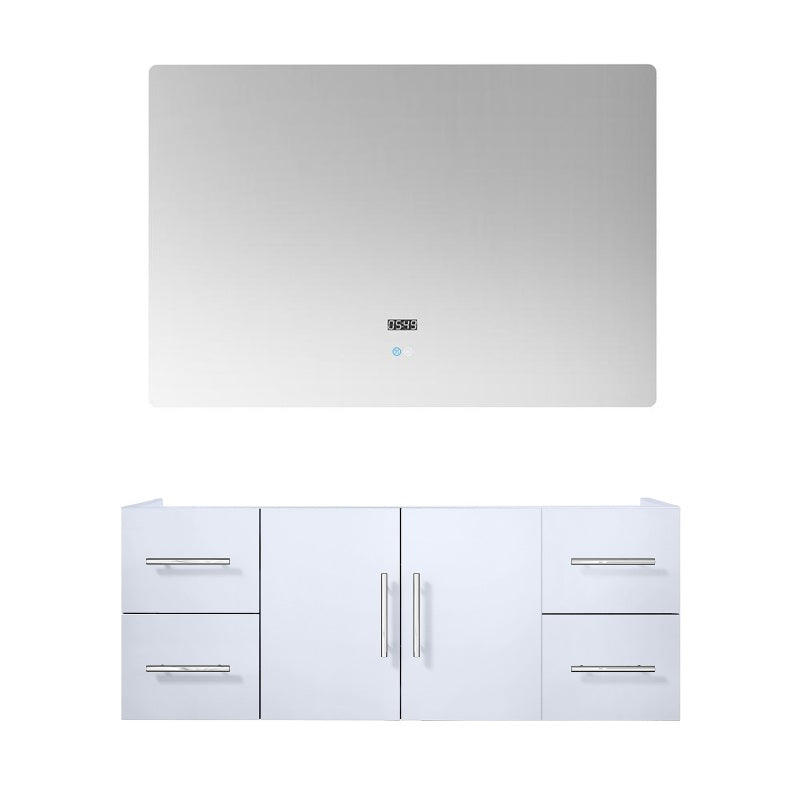 Lexora Geneva Transitional Glossy White 48" Vanity with 48" Led Mirror, no Top | LG192248DM00LM48