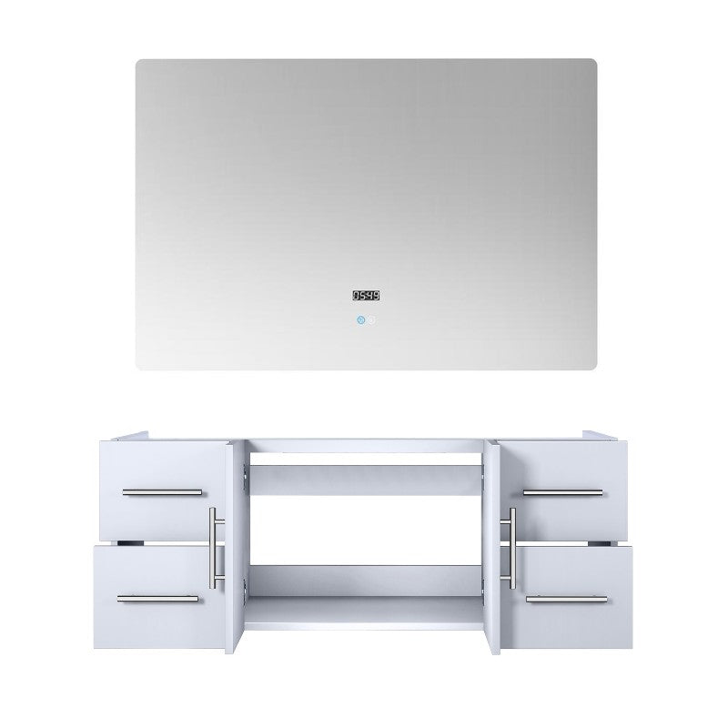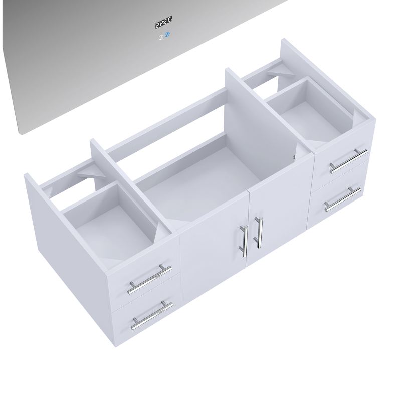 The wall-mounted Geneva vanity in white from Lexora is a beautiful blending of postmodern style and sensible functionality. When mounted on the wall, the Geneva vanity leaves ample space beneath for additional storage—ideal for bathrooms with limited space. Available in other colors, you can easily match this vanity to any bathroom décor. And, with a with premium LED mirror(s), this piece is all you need to give your bathroom a total makeover.