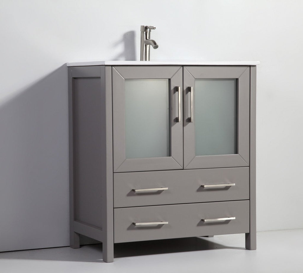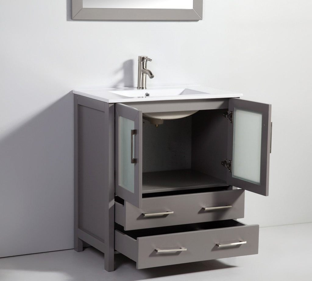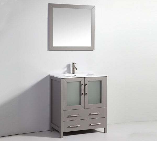 30" LIGHT GREY SOLID WOOD SINK VANITY WITH MIRROR