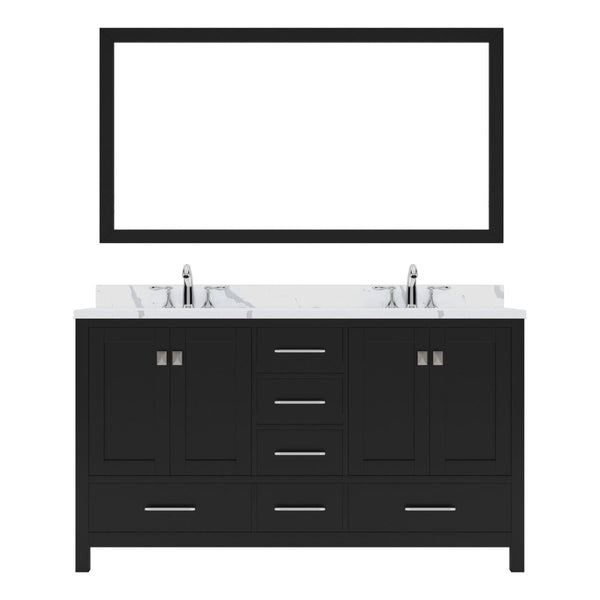- Includes - 60" Espresso Cabinet, Calacatta Quartz Countertop, 2 Square Undermount Sinks, 1 Framed Mirror, 2 Brushed Nickel Faucets