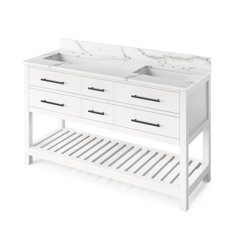 Jeffrey Alexander Wavecrest 60" White Double Undermount Sink Vanity With Quartz Top | VKITWAV60WHCQR