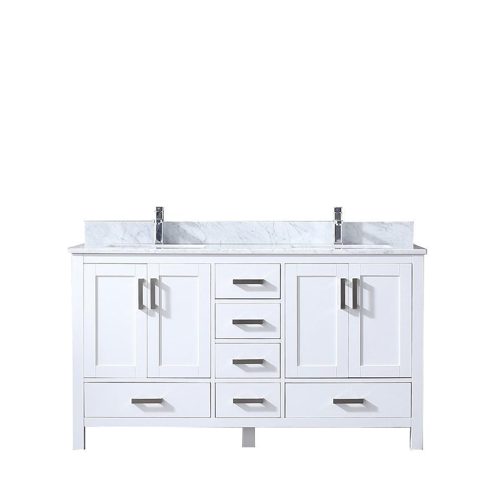 Jacques 60" White Double Vanity | White Carrara Marble Top | White Square Sinks and no Mirror