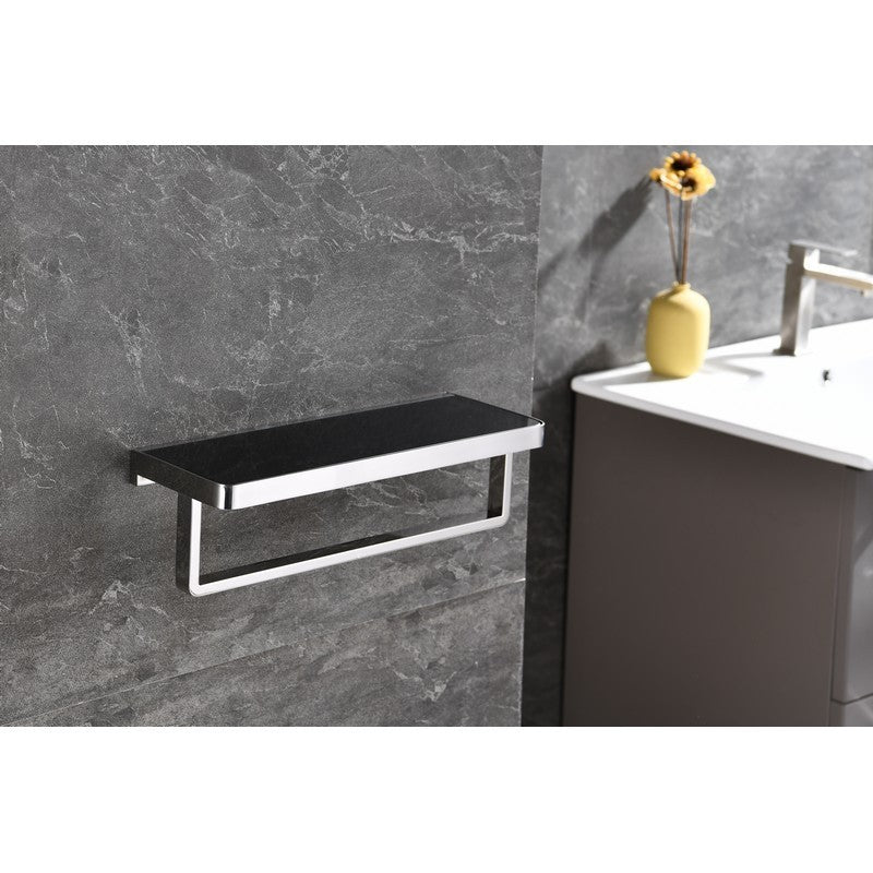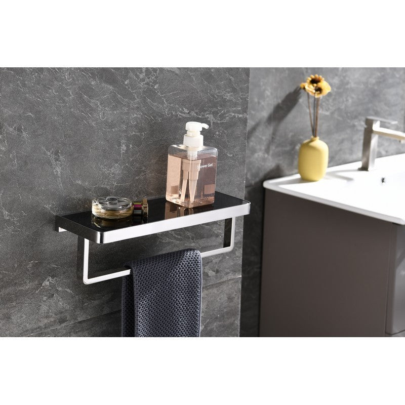 Bagno Bianca Stainless Steel Black Glass Shelf w/ Towel Bar - Chrome by Lexora | LST18152PCBG