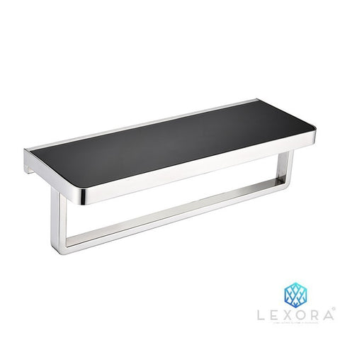 Lexora Bagno Bianca Stainless Steel Black Glass Shelf w/ Towel Bar - Chrome | LST18152PCBG