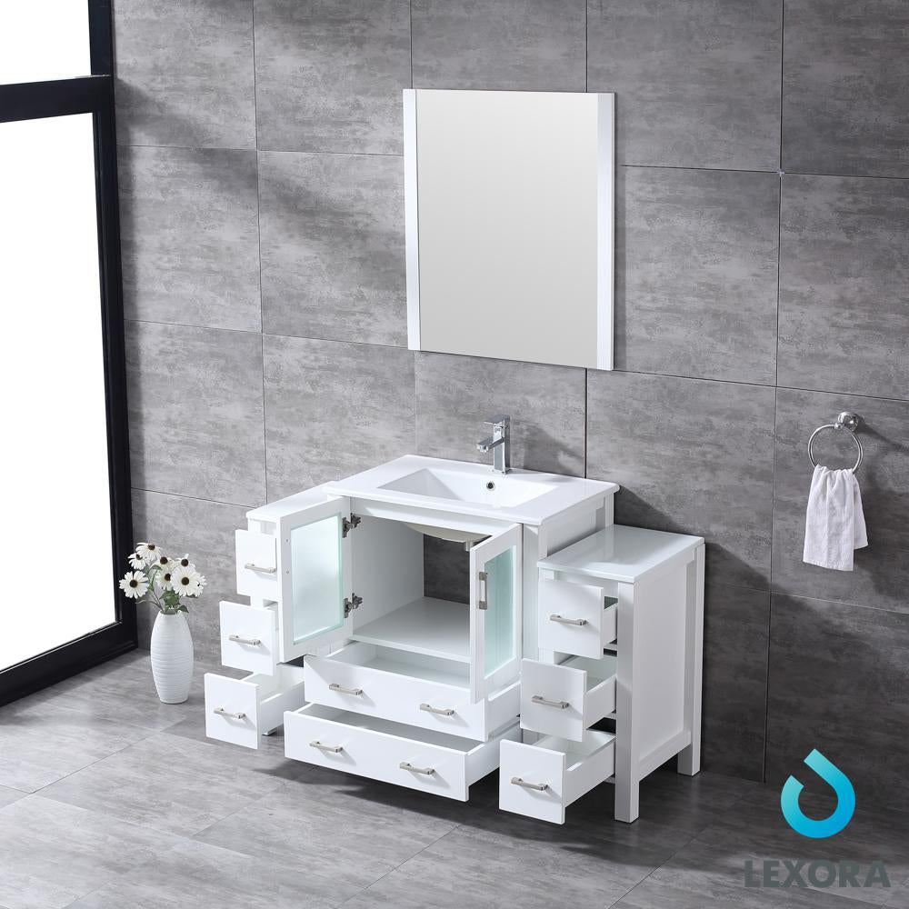Volez 54" White Single Vanity w/ 2 Side Cabinets | Integrated Top | White Integrated Square Sink and 28" Mirror