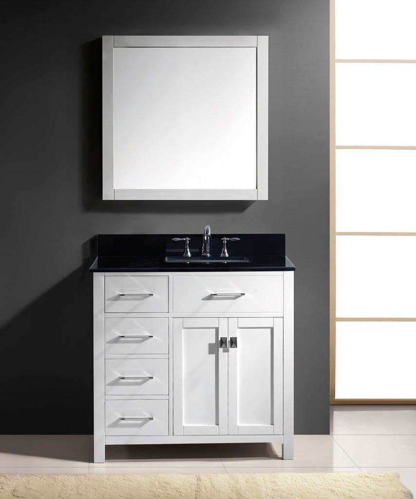 Inspired by the Caroline, the Caroline Parkway vanity offers a clean sleek structure with abundant storage. The vanity is constructed from quality solid oak wood and finished a espresso color. The Caroline Parkway also features an Black Galaxy countertop and a matching backsplash. This striking vanity will be a great centerpiece to any bathroom design. Virtu USA has taken the initiative in changing the vanity industry by adding soft closing doors and drawers to their entire product line. The premium soft-closing hardware not only increases the safety of the vanity, but also its lifetime reliability. Available color Espresso, Grey, White & Round/Square Sink.