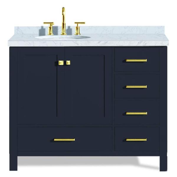 Cambridge 43 Inch Midnight Blue Modern Left Offset Single Oval Sink Bathroom Vanity A043S-L-VO-MNB By Ariel
