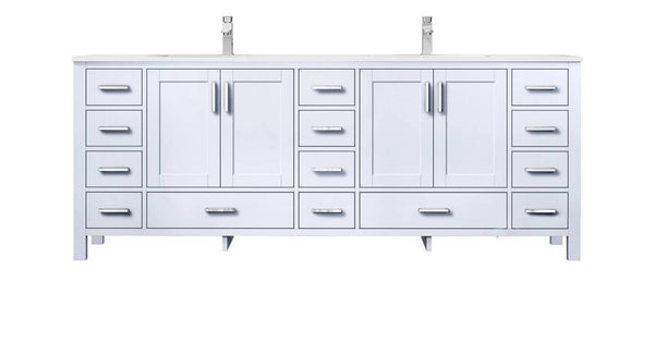 Details of the Jacques 84 Inch White Double Vanity, White Quartz Top, White Square Sinks and no Mirror by Lexora | LJ342284DAWQ000
