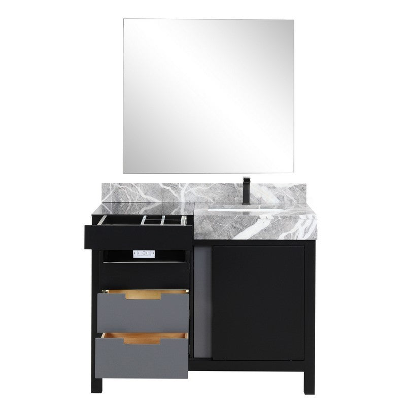 Zilara 42" Black and Grey Vanity Set, Marble Top, Balzani Gun Metal Faucet Set | LZ342242SLISM34FBG