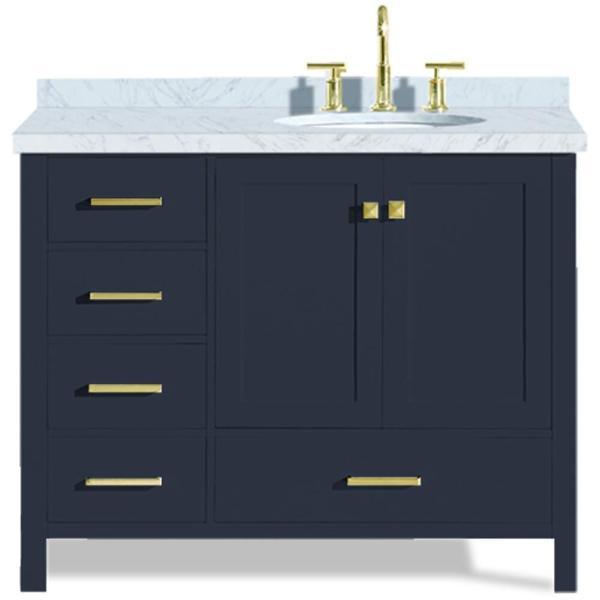 Cambridge 43 Inch Midnight Blue Modern Right Offset Single Oval Sink Bathroom Vanity Set A043S-R-MNB By Ariel