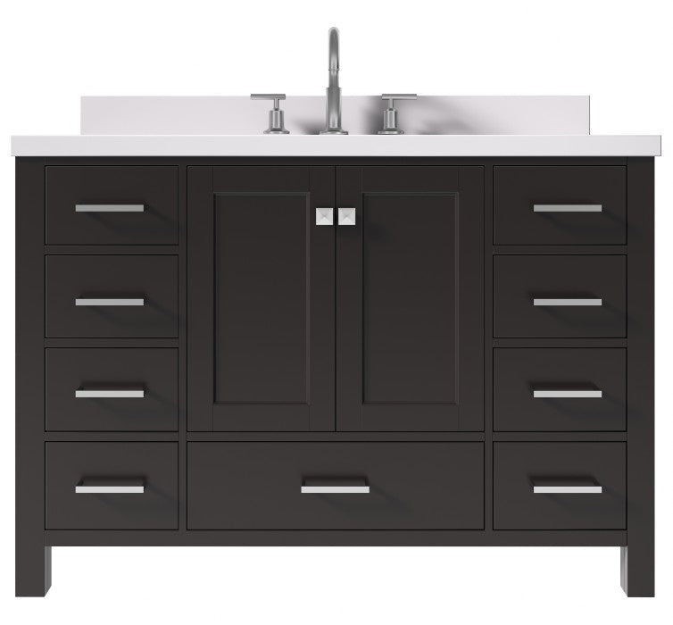 Ariel Cambridge Espresso Transitional 49" Oval Sink Vanity w/ White Quartz Countertop | A049SWQOVOESP