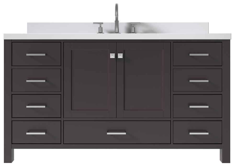 Ariel Cambridge Espresso Transitional 61" Oval Sink Vanity w/ White Quartz Countertop | A061SWQOVOESP