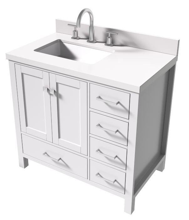 Details of the Cambridge White Transitional 37 Inch Left Offset Rectangle Sink Vanity w/ White Quartz Countertop by Ariel | A037SLWQRVOWHT