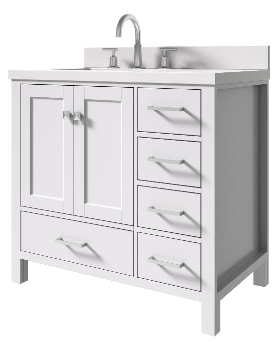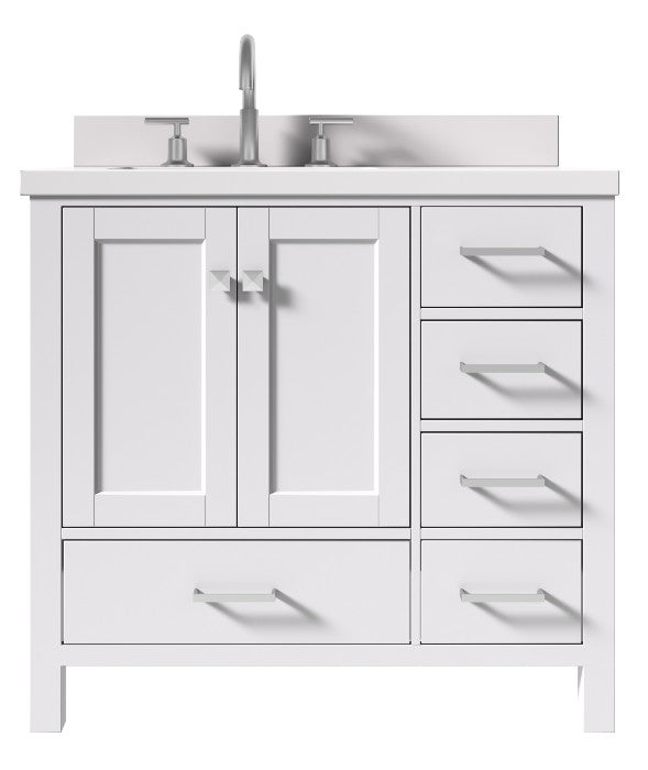 Ariel Cambridge White Transitional 37" Left Offset Rectangle Sink Vanity w/ White Quartz Countertop | A037SLWQRVOWHT
