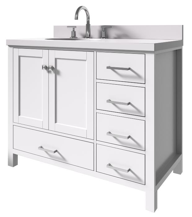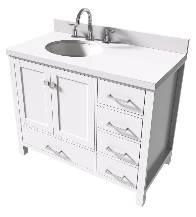 Ariel Cambridge White Transitional 43" Left Offset Oval Sink Vanity w/ White Quartz Countertop | A043SLWQOVOWHT