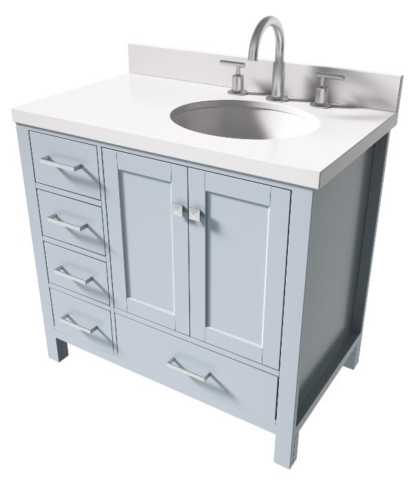 Details of the Cambridge Grey Transitional 37 Inch Right Offset Oval Sink Vanity w/ White Quartz Countertop by Ariel | A037SRWQOVOGRY