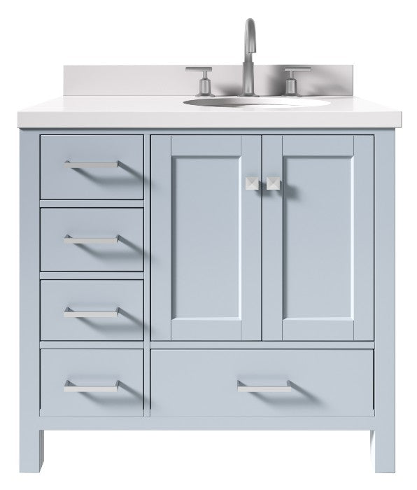 Ariel Cambridge Grey Transitional 37" Right Offset Oval Sink Vanity w/ White Quartz Countertop | A037SRWQOVOGRY