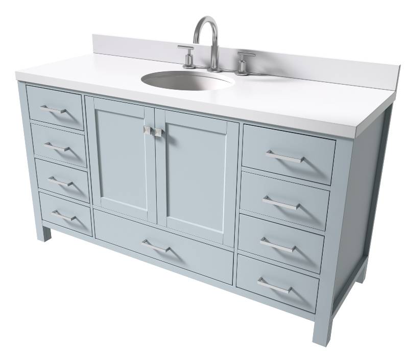 Details of the Cambridge Grey Transitional 61 Inch Oval Sink Vanity w/ White Quartz Countertop by Ariel | A061SWQOVOGRY