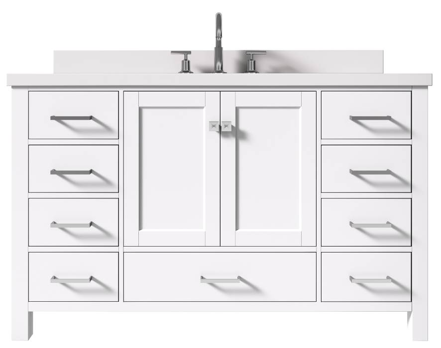 The Cambridge series from Ariel Bath is the perfect choice for those looking for a modern bathroom vanity. The Cambridge is available in single or double sink models with ceramic under-mount sinks included. These elegantly constructed units come with your choice of Carrara White Marble or Pure White Quartz countertops and are equipped with satin nickel finish hardware.
