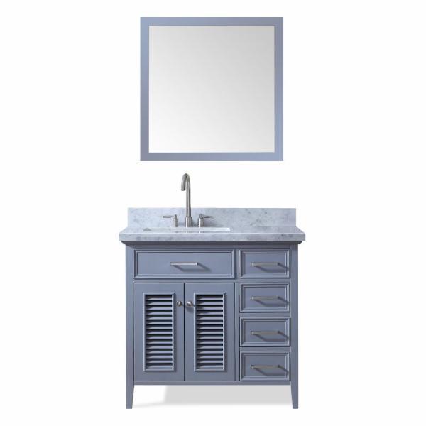 Kensington 37 Inch Grey Traditional Left Offset Single Sink Bathroom Vanity With Carrara White Marble Countertop D037S-L-GRY By Ariel