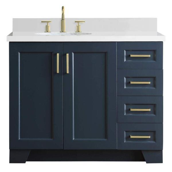 Taylor 43 Inch Midnight Blue Modern Left Offset Single Oval Sink Bathroom Vanity Q43SLB-WQO-MNB By Ariel