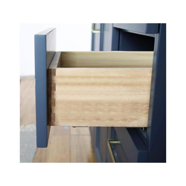 - Five full extension, self-closing drawers to meet all your storage needs (one concealed behind doors)