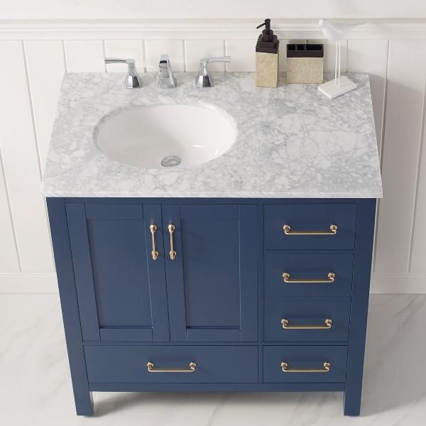 Vinnova Gela 36" Modern Royal Blue Single Sink Vanity w/ Carrara Marble Countertop