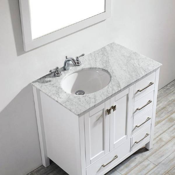 Vinnova Gela 36" Modern White Single Sink Vanity Set w/ Carrara Marble Countertop