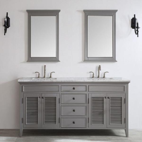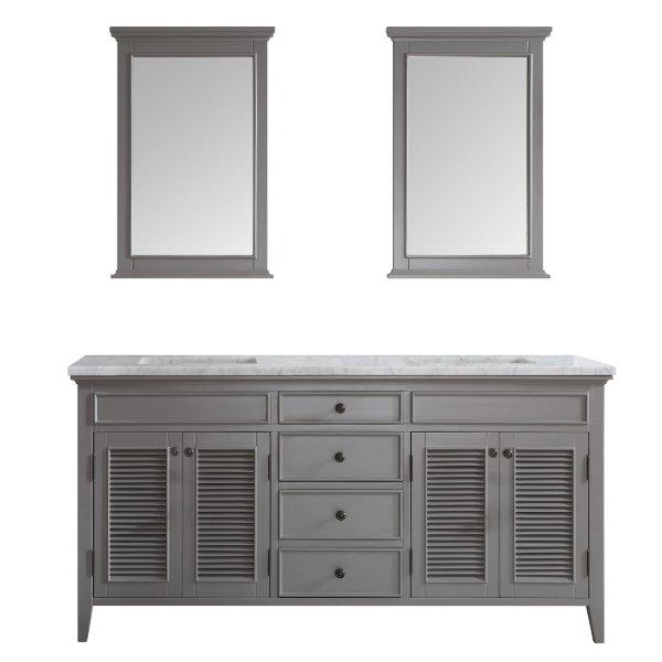 Piedmont 72 Inch Double Vanity in Grey with Carrara White Marble Countertop With Mirror by Vinnova